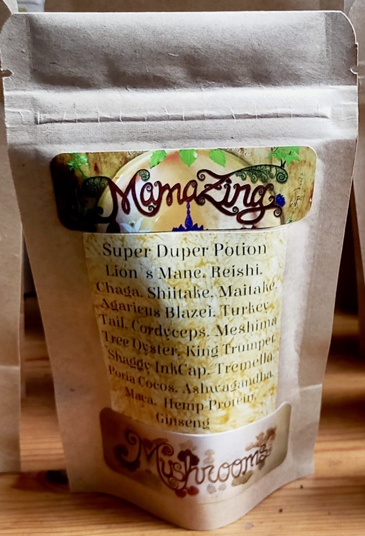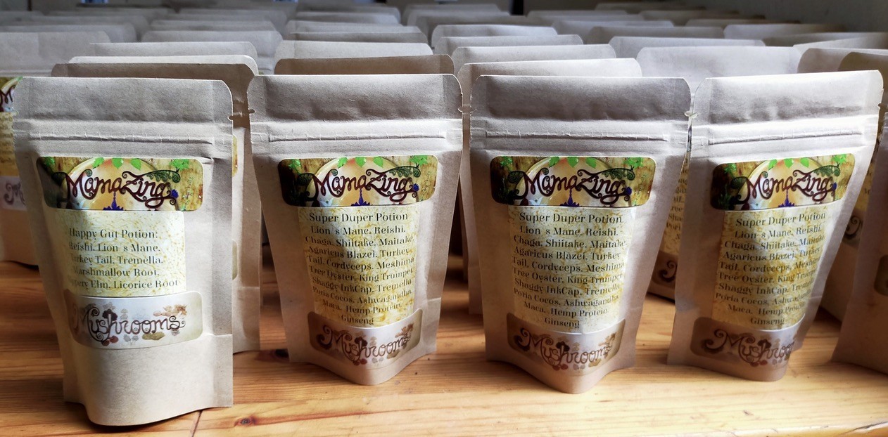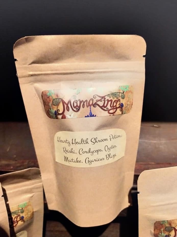 The whens and hows are also flexible. We start our day with a MamaZing Kombucha mixed with a mushroom blend. We may have another later in the day or the evening. If we need a pick up or are feeling off balance, we have some mushrooms. Studies have shown there is not an “overdose” amount, but best to start with less and let the body adjust to the new information and nutrition from the mushrooms.